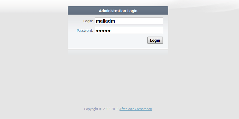 This is the screen used to log into AdminPanel of WebMail Lite. If WebMail Lite is installed at http://your.domain.com/webmail/, AdminPanel will be available at http://your.domain.com/webmail/adminpanel/.