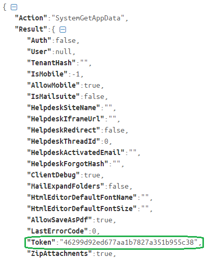 Then, log user into their WebMail Pro account by running SystemLogin request. This request returns response of the following kind: