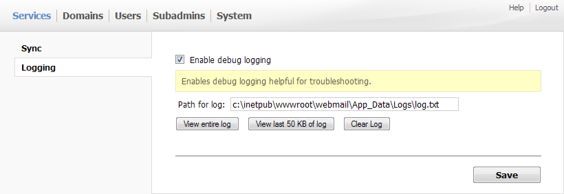 If anything suddenly goes wrong with WebMail Pro, the first thing to do is to check the debug logs, and of course you need to have them enabled and configured, you can do that in this area of AdminPanel.