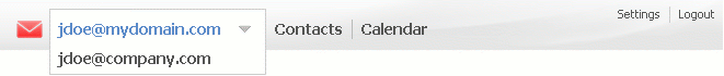 Main header at the top of the WebMail screen where email account information, "Settings" and "Logout" links are displayed.