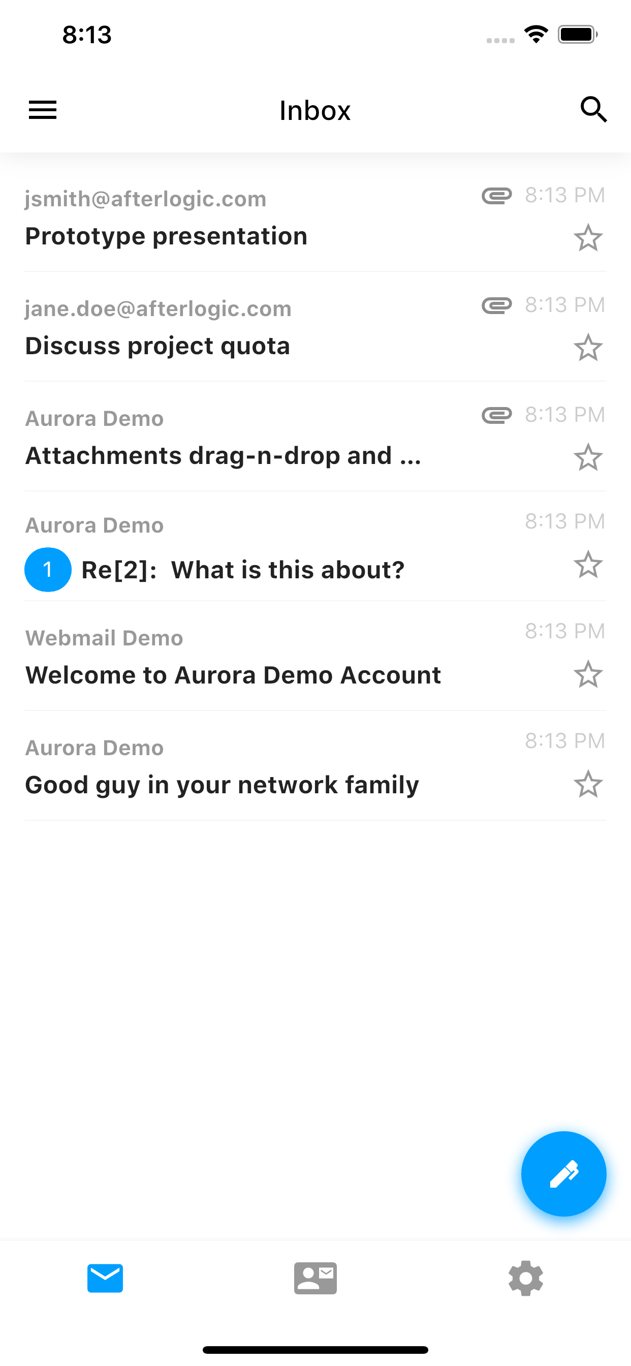 See all the emails from different accounts in one place. Users can select which accounts must be included in All Inboxes and set individual color labels for them.