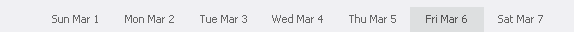 #time_title_1, #time_title_2, #time_title_3 Class determining the look of text of timeframe switcher. calendar_arrow_left Class determining the look of the button for moving the time frame to the left. calendar_arrow_right Class determining the look of the button for moving the time frame to the right. .day_headers_inner_today