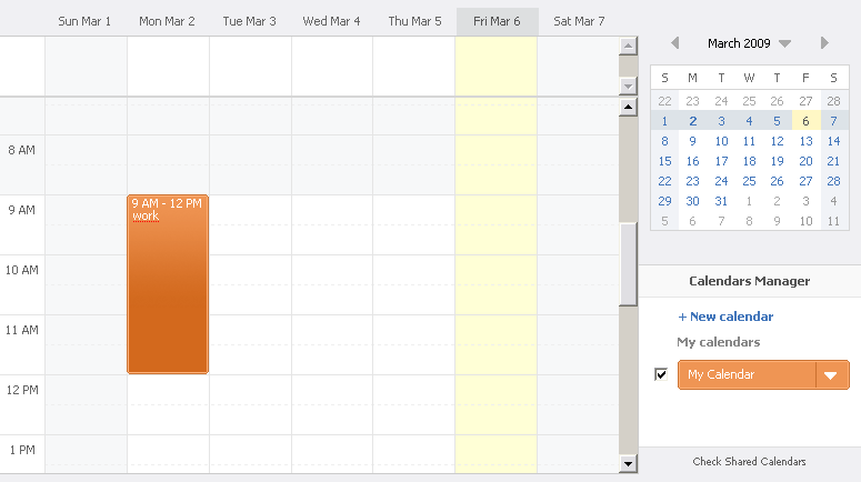 calendar_header The look of headers of small calendar and calendar manager. calendar_manager The look of calendar manager area. mini_calendar_box .CalLink The look of text in current month cells. weekend The look of cell marked as weekend. select The look of currently selected cell. today The look of today's cell. today a The look text in today's cell. .work_area_week