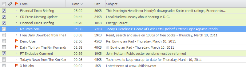 Main list box where read, unread, selected and filtered messages are displayed.