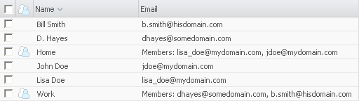 The list of contacts and contact groups.