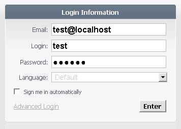 Login panel, where a user should enter parameters of his account.